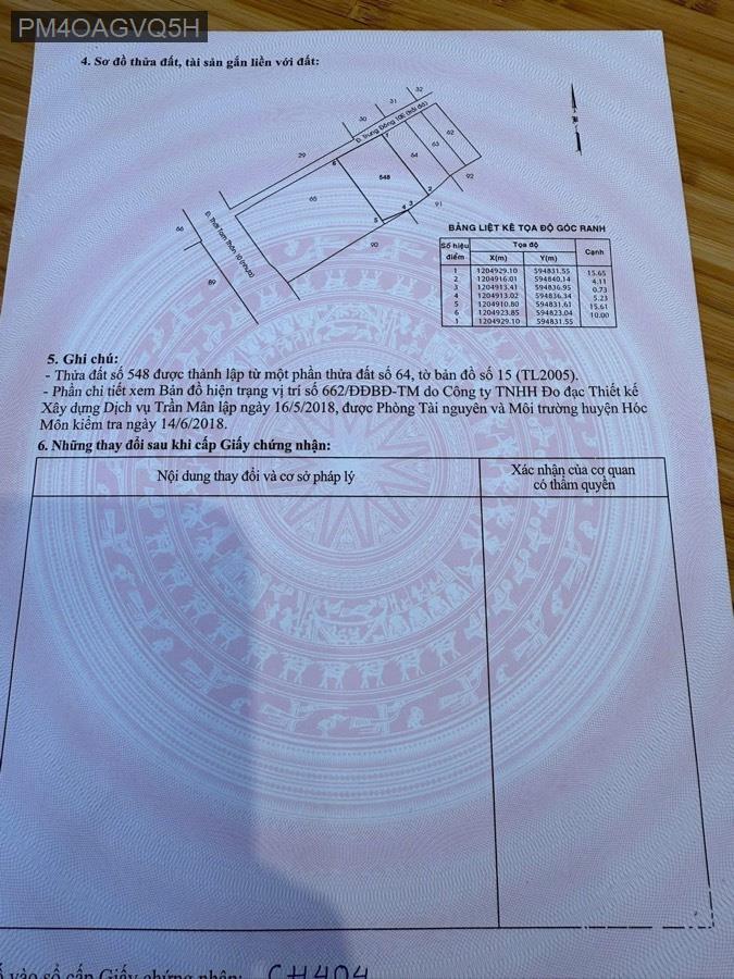 Bán đất 1/ Thới Tam Thôn 10 cách đường Đặng Thúc Vịnh 50m, Hóc Môn