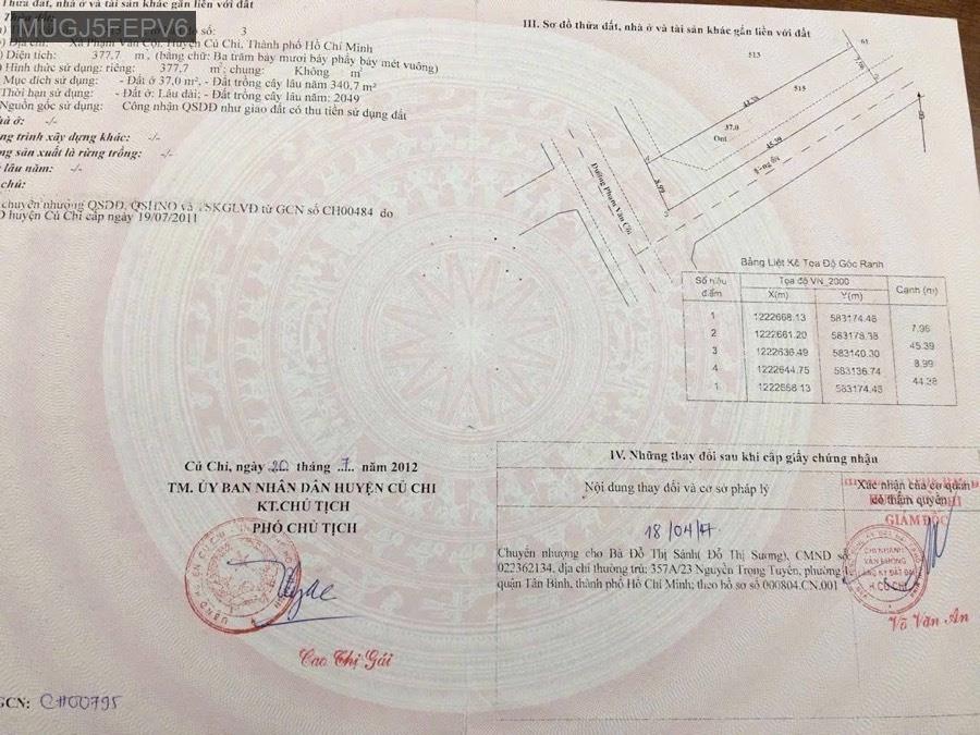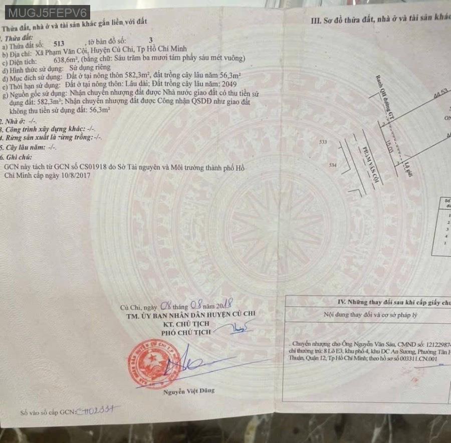 Bán đất 2 sổ góc 2 mặt tiền đường Phạm Văn Cội, Củ Chi