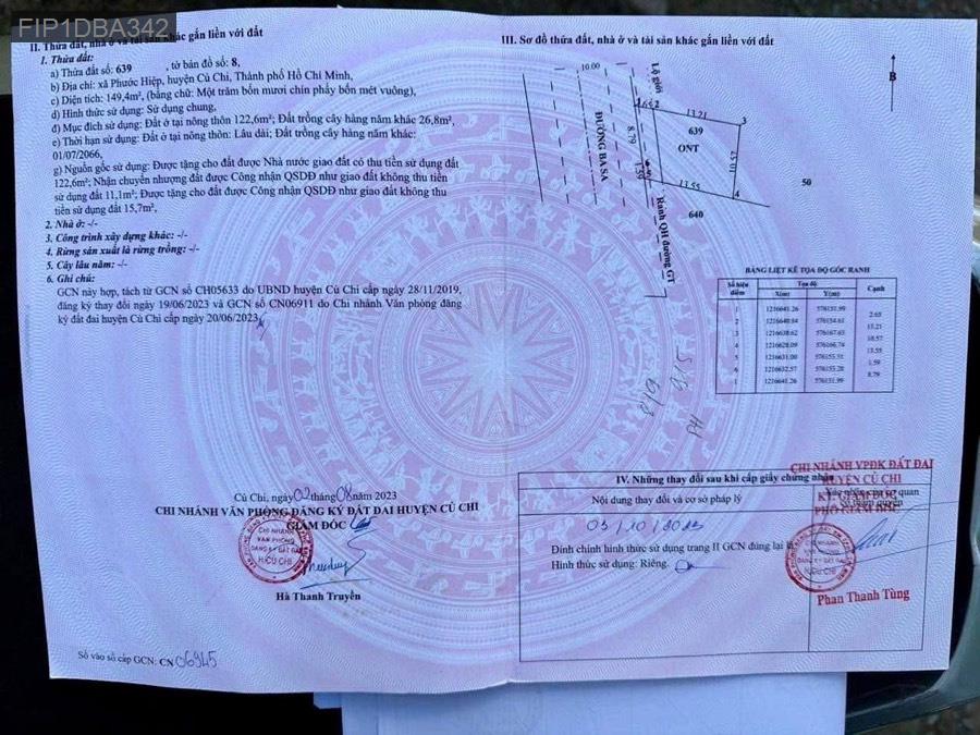 Bán đất mặt tiền đường Ba Sa, Xã Phước Hiệp cũ (Xã Tân An Hội mới), Củ Chi