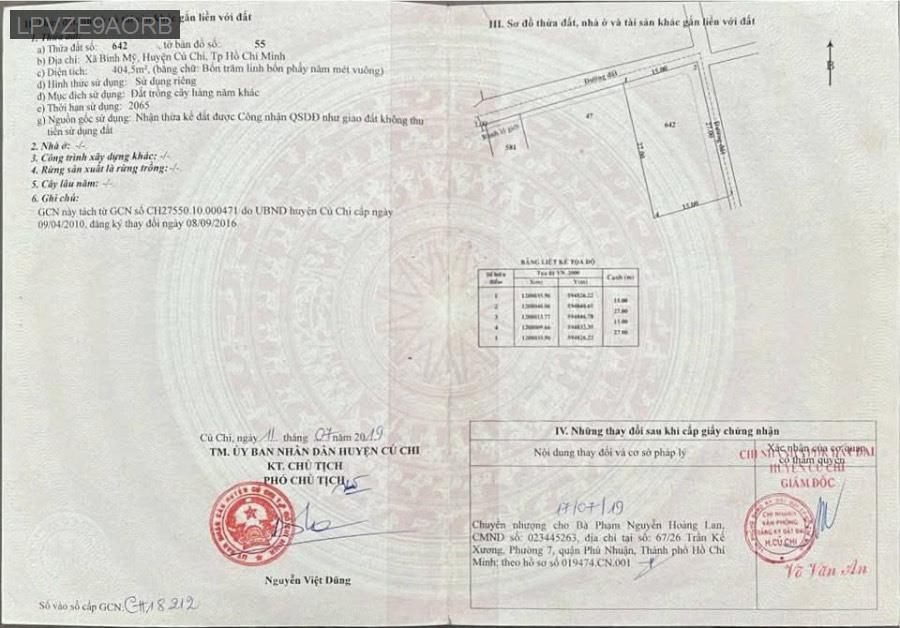 Bán đất vườn có thổ cư Sổ Hồng Riêng Ấp 7, Bình Mỹ