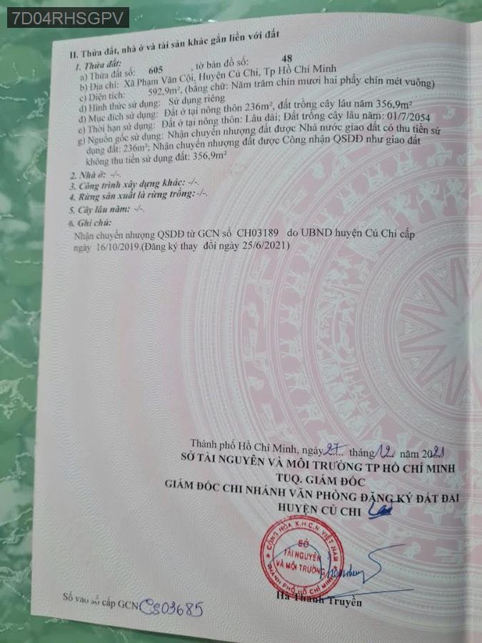Bán lô đất mặt tiền đường nhựa 483, Xã Phạm Văn Cội, Củ Chi