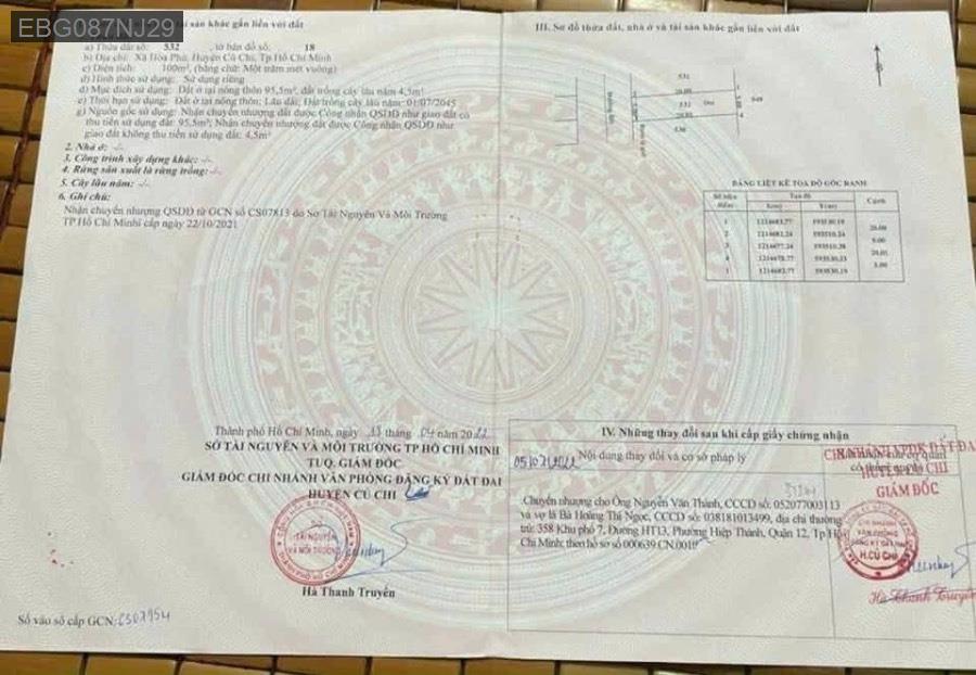 Bán lô đất mặt tiền đường nhựa xây nhà ở và buôn bán kinh doanh, Xã Hoà Phú, Củ Chi