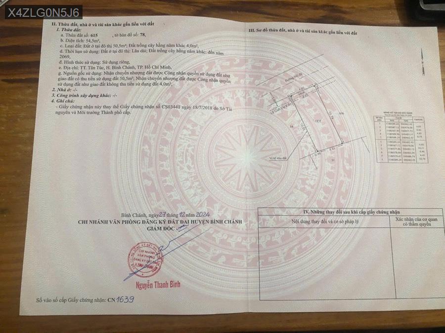 Bán lô đất Tân Túc, Bình Chánh